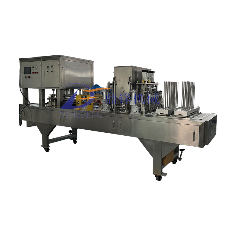 產(chǎn)品說明: CD-20B型塑(紙)杯填充灌裝封杯機(jī)適用于各種酸奶、牛奶、豆奶、果凍、果汁飲料、調(diào)料、果醬等產(chǎn)品的生產(chǎn),能自動(dòng)完成塑(紙)杯的自動(dòng)落杯、填充、灌裝、日期打印、紫外線消菌、光電定位、兩道熱封、自動(dòng)對(duì)芯剪切及廢膜回收等功能。整機(jī)采用德國歐母龍可編程邏輯控制器、臺(tái)灣氣動(dòng)控制元件、智能數(shù)顯溫度控制系統(tǒng),具有封口強(qiáng)度高,密封性好,故障率低等特點(diǎn),是企業(yè)自動(dòng)化生產(chǎn)的首選產(chǎn)品。 技術(shù)參數(shù):