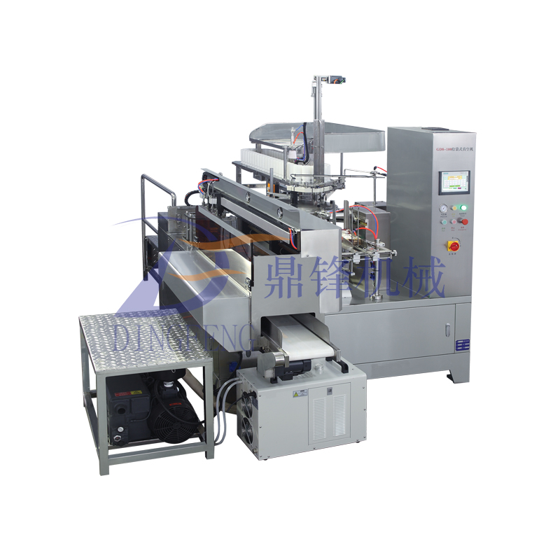 GD8-ZK100 全自動給袋式包裝機(真空)是我廠自主研發(fā)的新產(chǎn)品,該機能夠使用機械手將包裝袋自動取袋,自動撐開,